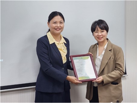 写真1:ビューローベリタス(Bureau Veritas)は、GRS認証書を成信実業に授与しました