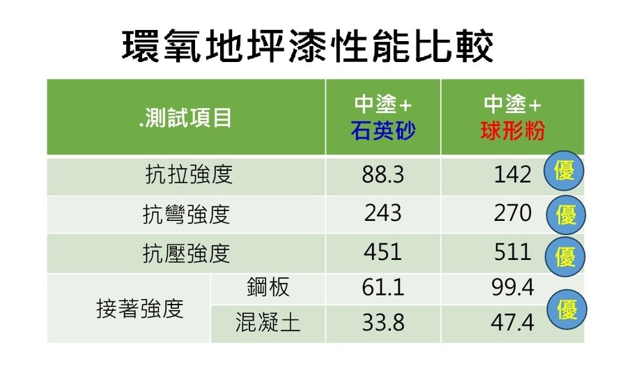● 水泥製品、混凝土上之耐磨流展型砂漿中、面塗塗料。